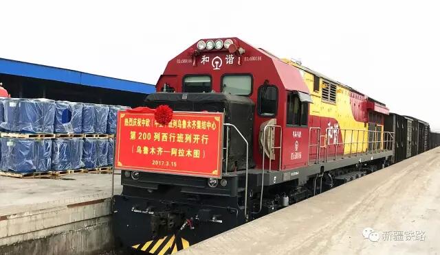 2017年3月15日下午17時許,X9081次貨物列車從中歐(中亞)班列烏魯木齊集結(jié)中心始發(fā),駛向哈薩克斯坦阿拉木圖,這是中歐(中亞)班列烏魯木齊集結(jié)中心自2016年5月投入運營后開行的第200列西行班列。